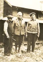 Oscar "Shorty" Luther, Daddy Raker and Otto Muhlig standing in front of Guardian's Cottage |