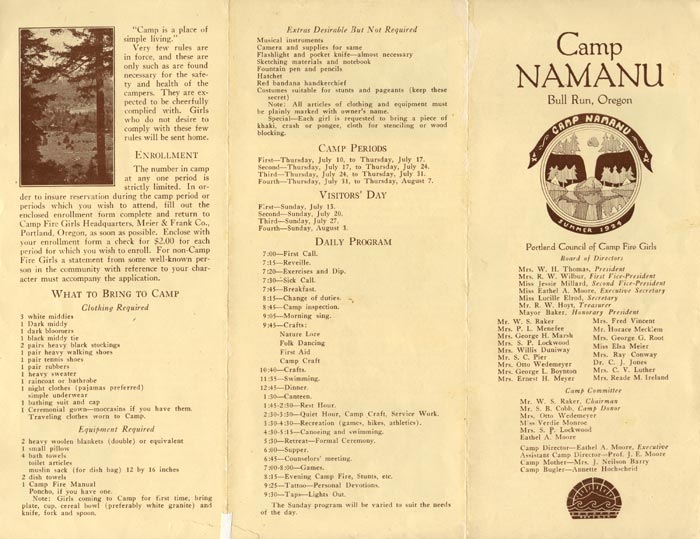 Front of camp brochure - 1924.